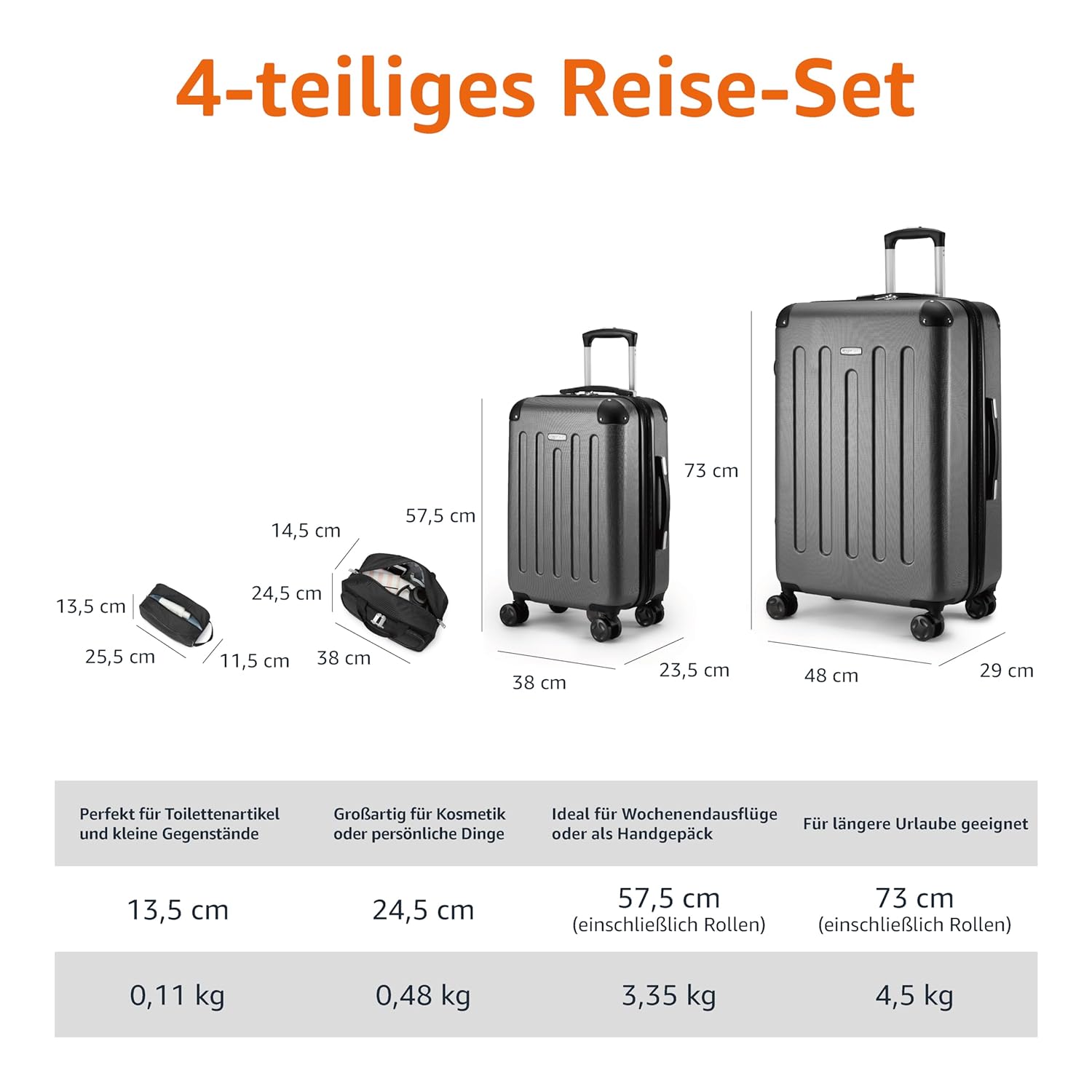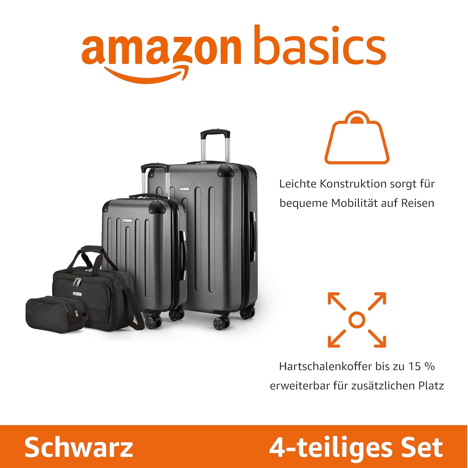 Amazon Basics Hardside Carry-On Spinner Entry Luggage Set, black, Hard shell carry-on luggage with 3 wheels