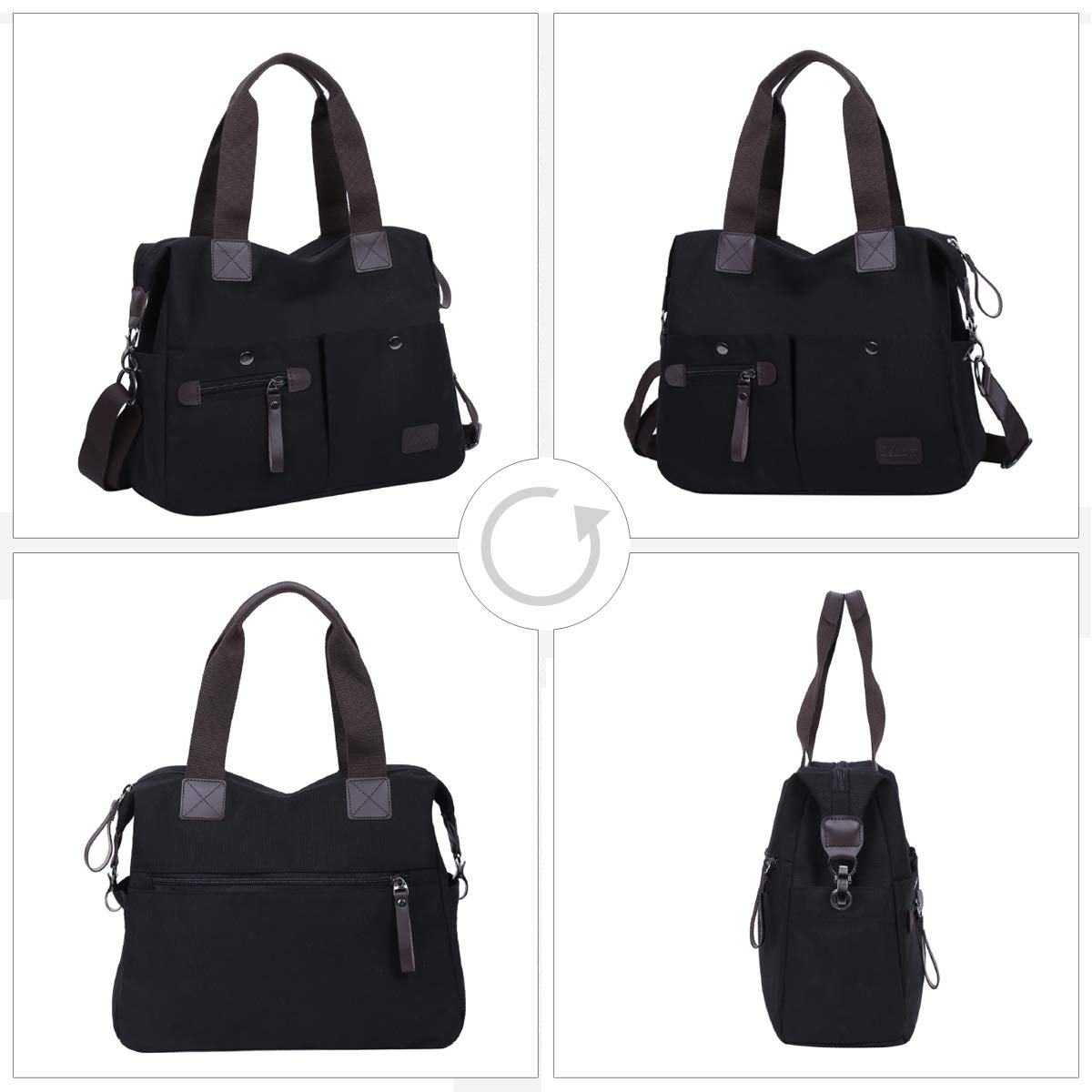 Eshow Women’s Canvas Shoulder Bag Handbag With Handle, Anti Theft Compartments, Black / Grey / Anthracite, For Shopping And Walking Black