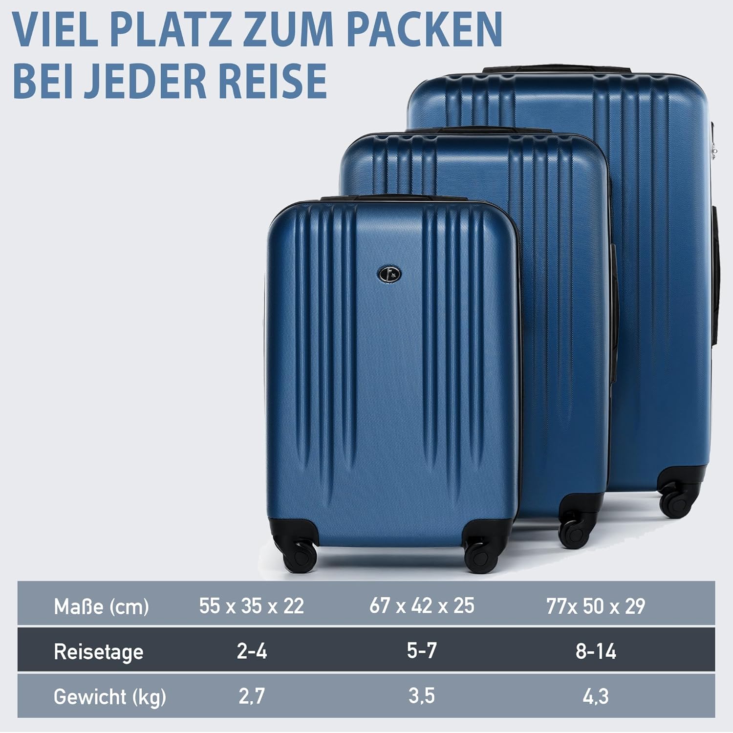 FERGÉ Marseille Suitcase Set Hard Shell 3-Piece Trolley Set – Hand Luggage 55 cm, L and XL 3 Hard Shell Suitcases Rolling Suitcase 4 Wheels 100% ABS, royal, Suitcase set