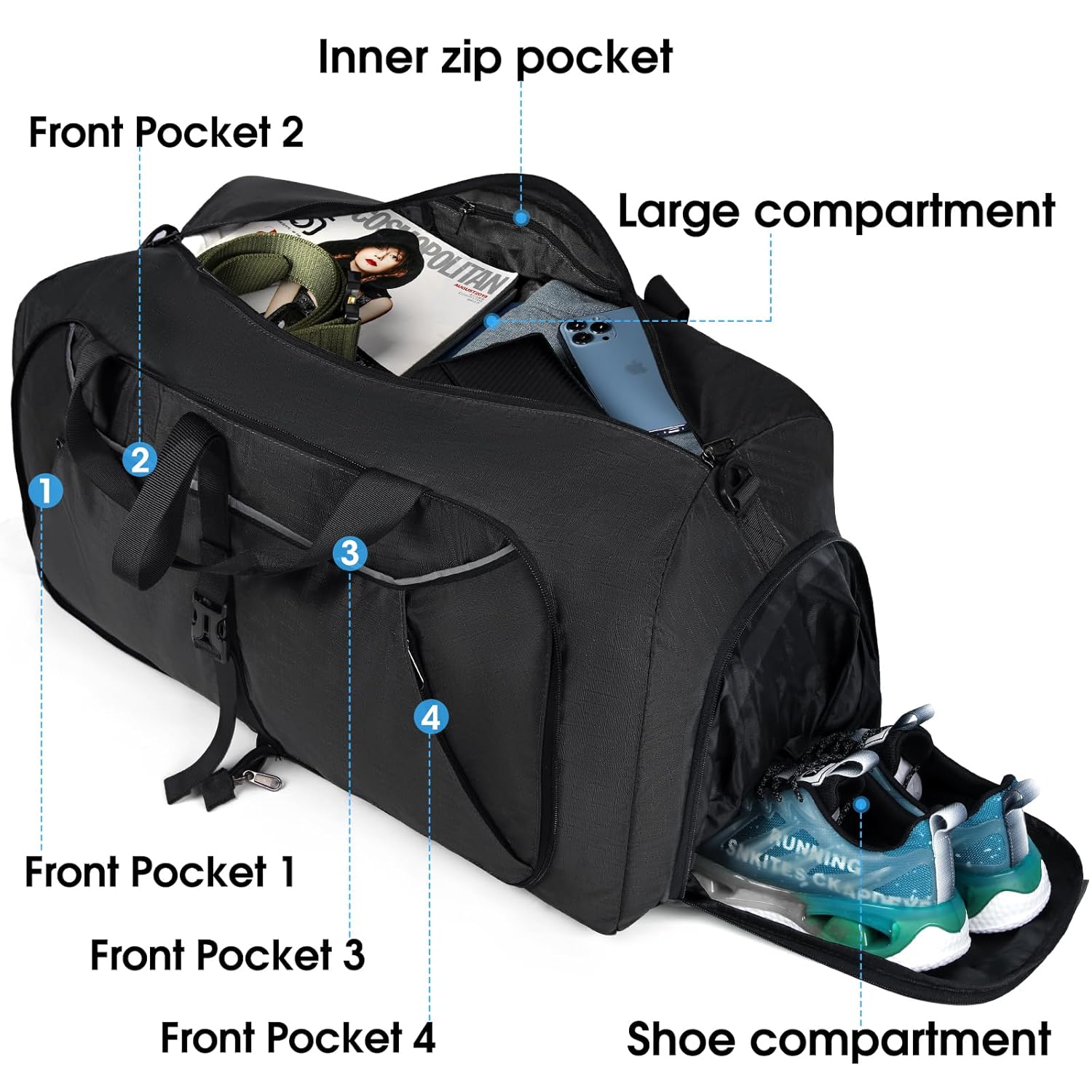 Schreibe die erste Rezension für „Foldable Travel Bag 65L 80L 100L Large Lightweight Sports Bag with Shoe Compartment for Men Women Weekender Bag Travel Luggage Bag for Travel, Gym, Holiday and Camping, black,…“