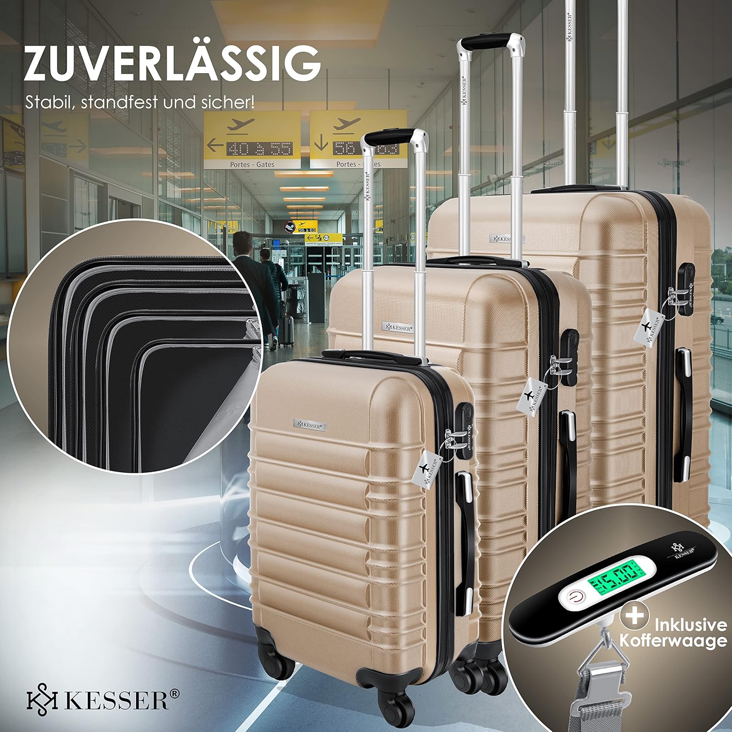 KESSER® 3-Piece Set Basic Hard-Shell Trolley Suitcases, ABS Travel Luggage on 4 Wheels with Telescopic Handle and Lock, M-L-XL
