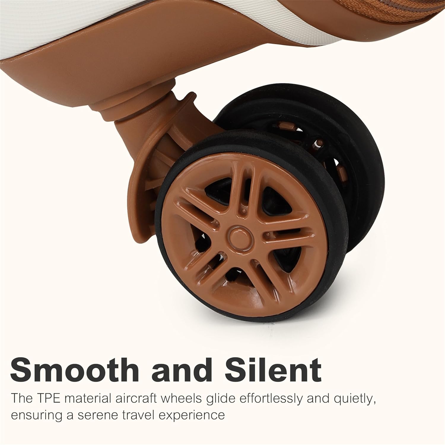 KONO Suitcase Trolley Hand Luggage Suitcase Travel Suitcase from ABS + PC Hard Case with 4 Wheels TSA Lock, Cream / Brown, Cabin Luggage, ABS + Polycarbonate, Hard Shell,…