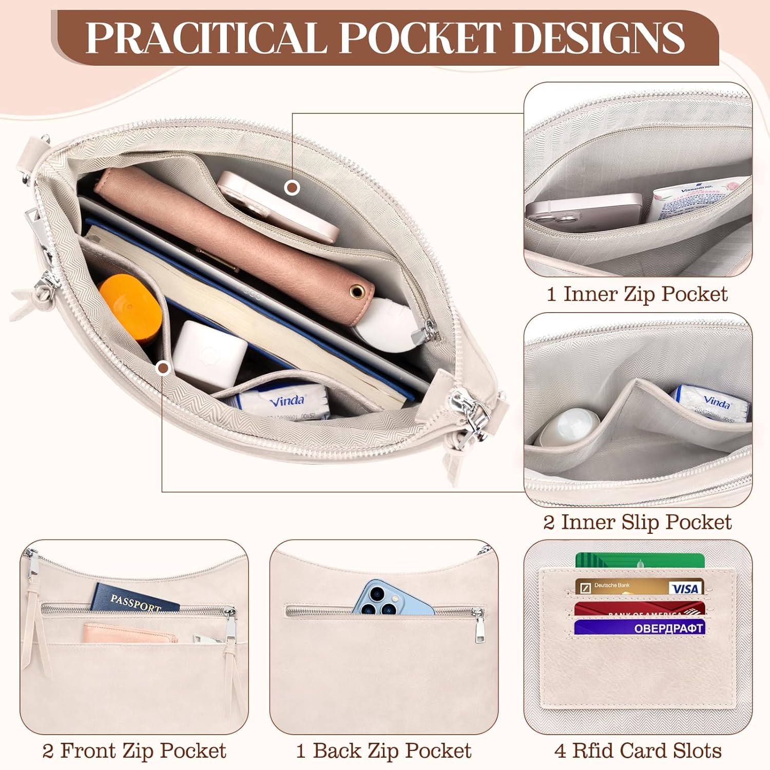 LUROON Women’s Medium Lightweight Shoulder Bag Large with Many Compartments PU Leather Crossbody Bags Women’s Handbag with Adjustable Wide Shoulder Strap