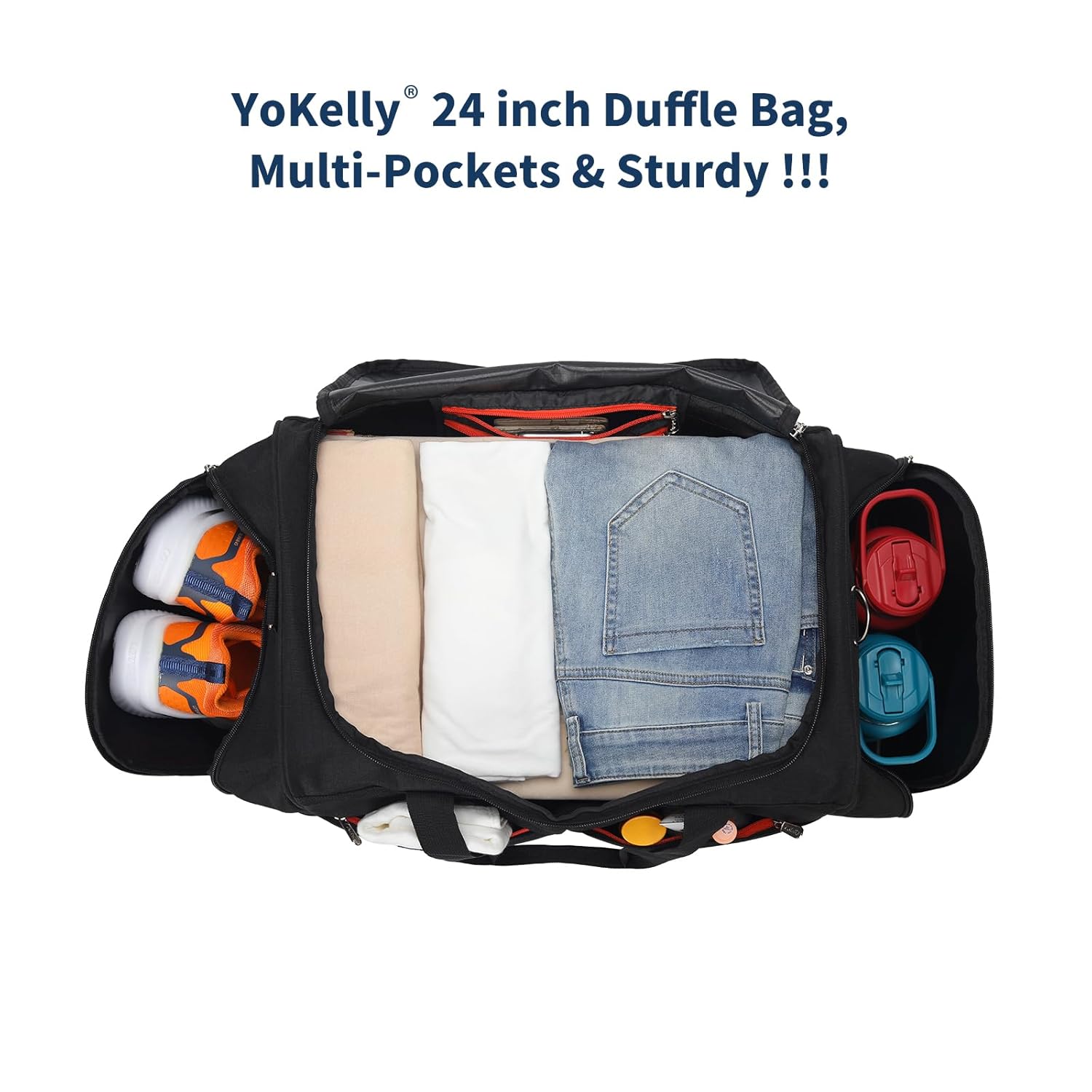 YOUNGOA Foldable Travel Bag, Large Foldable Travel Bag for Men and Women, Large Lightweight Waterproof Sports Bag with Shoe Compartment, black, 120 l, Foldable