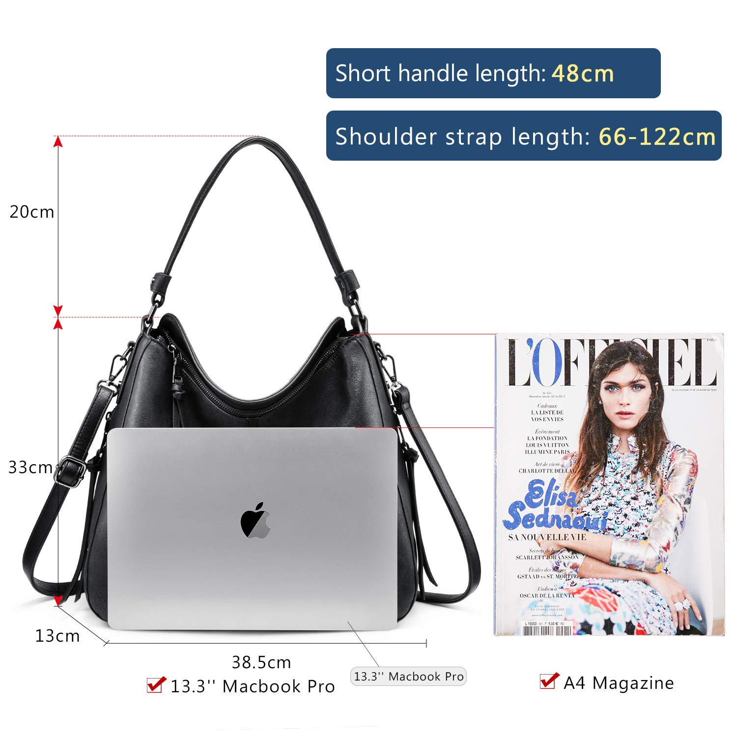 Realer Handbag Women’s Shopper Bag Tote Leather Shoulder Bag Large Shoulder Bag Woman Elegant Handbag with Tassels Removable Shoulder Strap, Black gun colour zip, l, Carry bags.