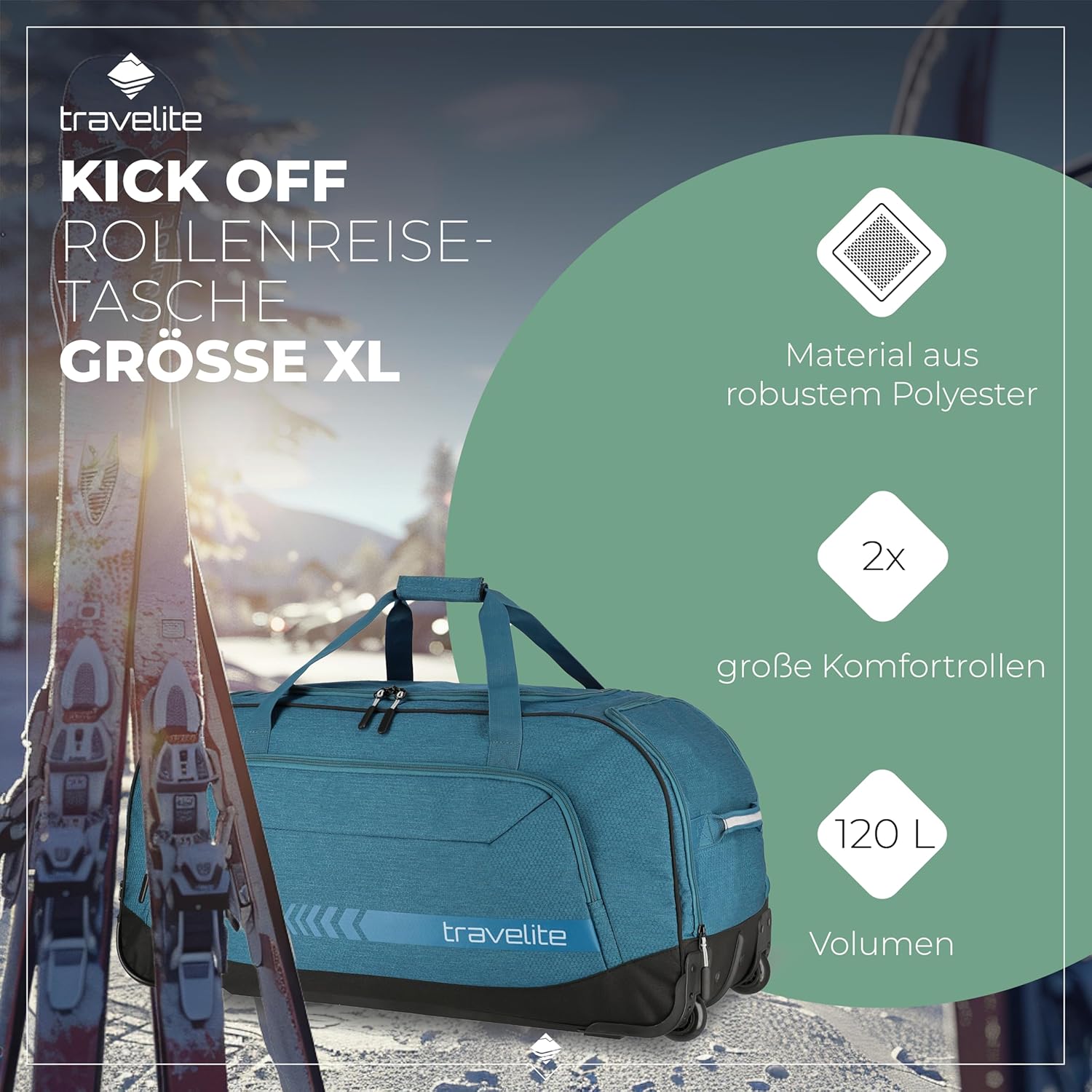 travelite Trolley travel bag size XL, luggage series Kick Off: Practical travel bag with wheels for holidays and sports, 77 cm, 120 litres, 006911, petrol, 77 cm (Trolley L)