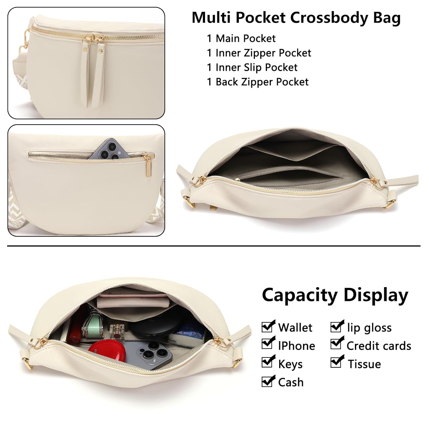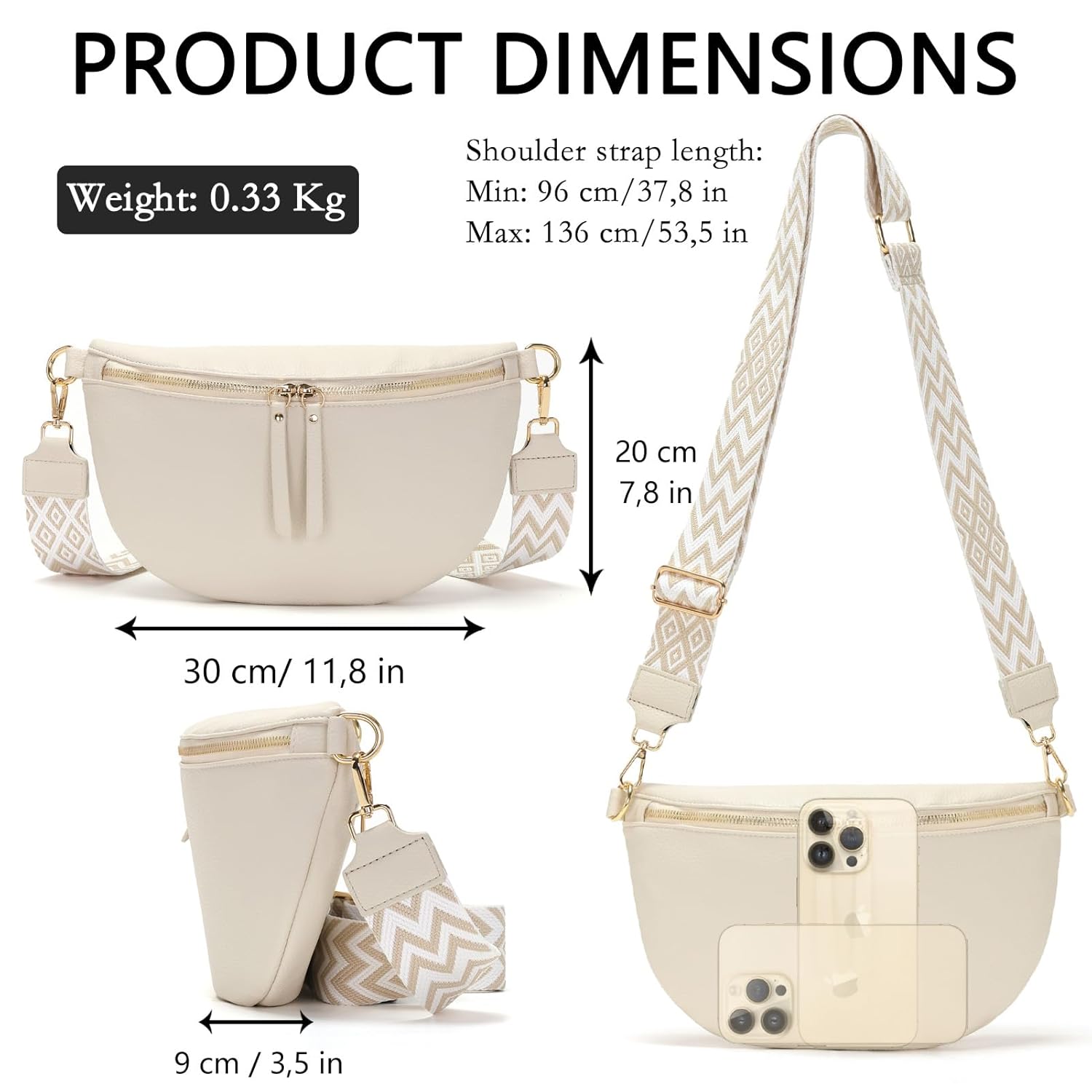 Vezluax 30 x 20 cm Large Bum Bag Women’s Vegan Leather Shoulder Bag Women’s Crossbody Bag Stylish Belt Bag with Wide Strap, L-beige, Utility
