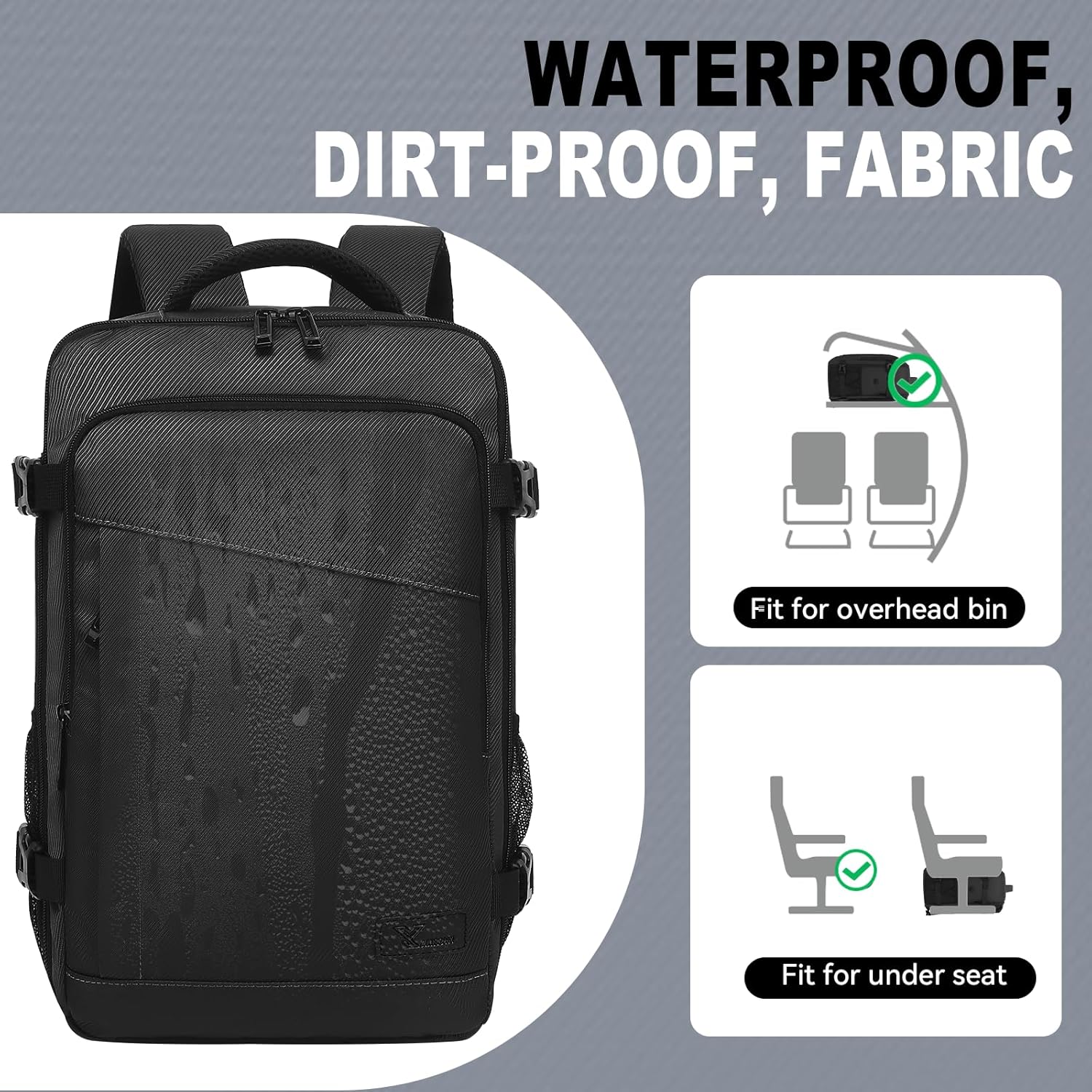 Yankony Hand Luggage Backpack 40 x 20 x 25 cm for Ryanair Travel Backpack for Aeroplane 14 Inch Laptop Compartment Waterproof & Theft Proof School Backpack for Men Women, black,…